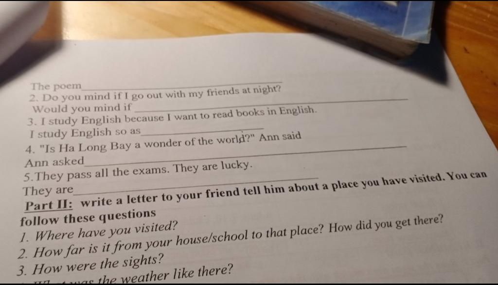 4. Ann asked me if Ha Long Bay was a wonder of the world.