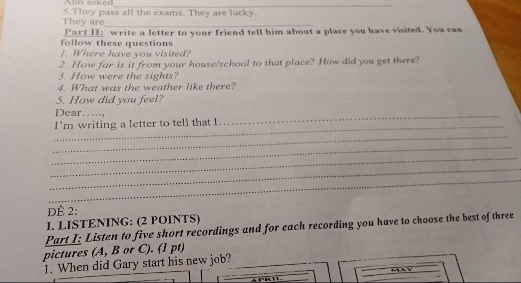 Part II: write a letter to your friend tell him about a place you have visited. You can