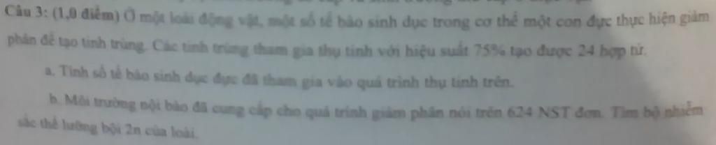 Số tế bào tham gia giảm phân là: 24 : 75% : 4 = 8 (TB)