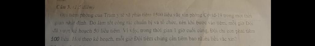 đã vuợn kế hoạch 50 liêu tiêm. Vi vậy, trong thời gian 1 giờ cuối cùng. Đội chi còn phai ...