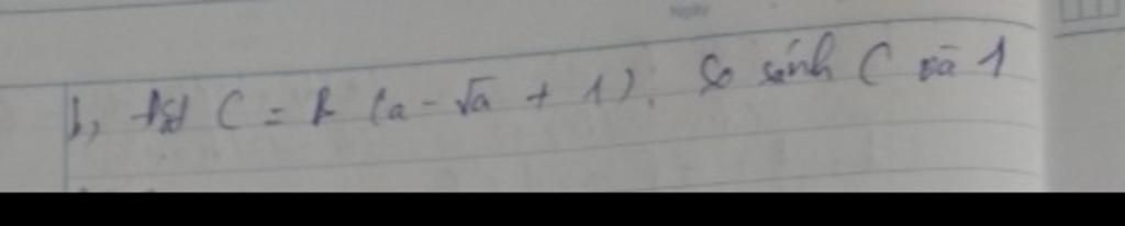 C=B(a- a+1) C= a- a+1 xét C-1 a - a+1-1 a - a (a-1)(a-0) \(\left[ \begin{array}{l}a-1>0\\a=0\end{array} \right.\) \(\left[ \begin{array}{l}a>1\\a=0\end{array} \right.\) \(\left[ \begin{array}{l}a>1\\a=0\end{array} \right.\) C-10 C1 Rút gọnC=B(a- a+1) C= a- a+1 xét C-1 a - a+1-1 a - a (a-1)(a-0) \(\left[ \begin{array}{l}a-1>0\\a=0\end{array} \right.\) \(\left[ \begin{array}{l}a>1\\a=0\end{array} \right.\) \(\left[ \begin{array}{l}a>1\\a=0\e... xem thêm