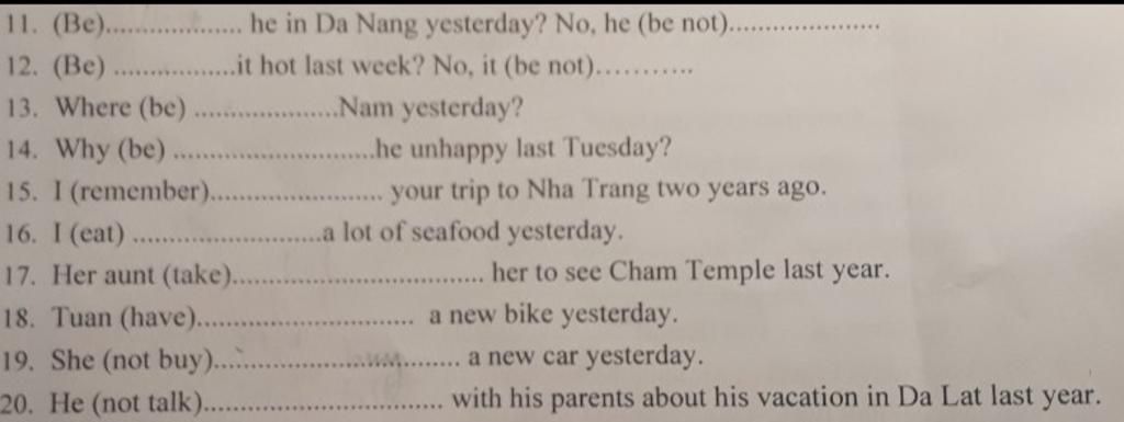 11. Was , wasn't ( chia be mà he số ít nên dùng was)