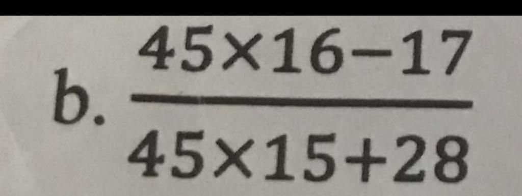b, `(45 × 16 - 17)/(45 × 15 + 28)`