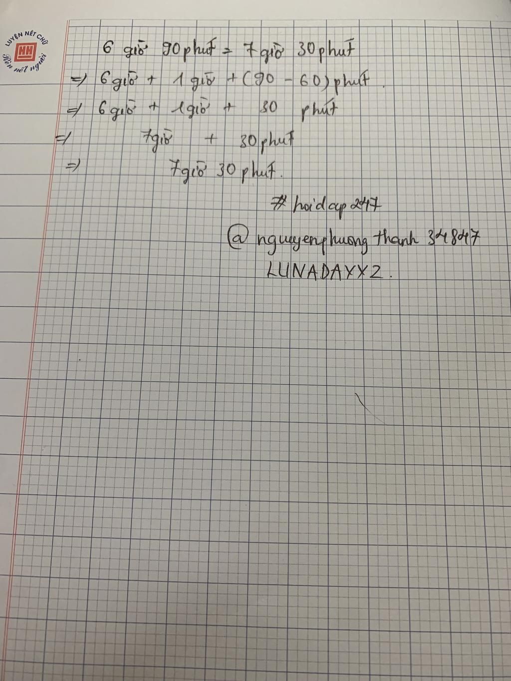 `=6` giờ `+ 1` giờ `+ 30` phút
