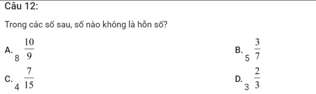 =>đáp số A không phải là hỗn số.