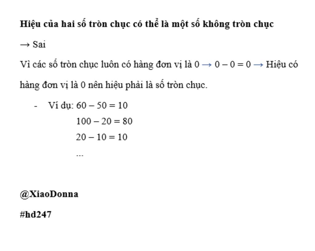 `@` Hiệu của hai số tròn chục luôn là một số tròn chục.