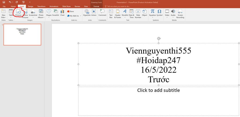 `B1 :` Vào Insert rồi chọn Pictures.