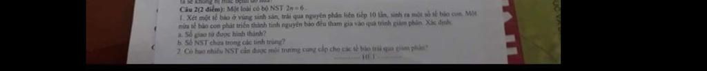 Số tế bào con được sinh ra qua $10$ lần nguyên phân là