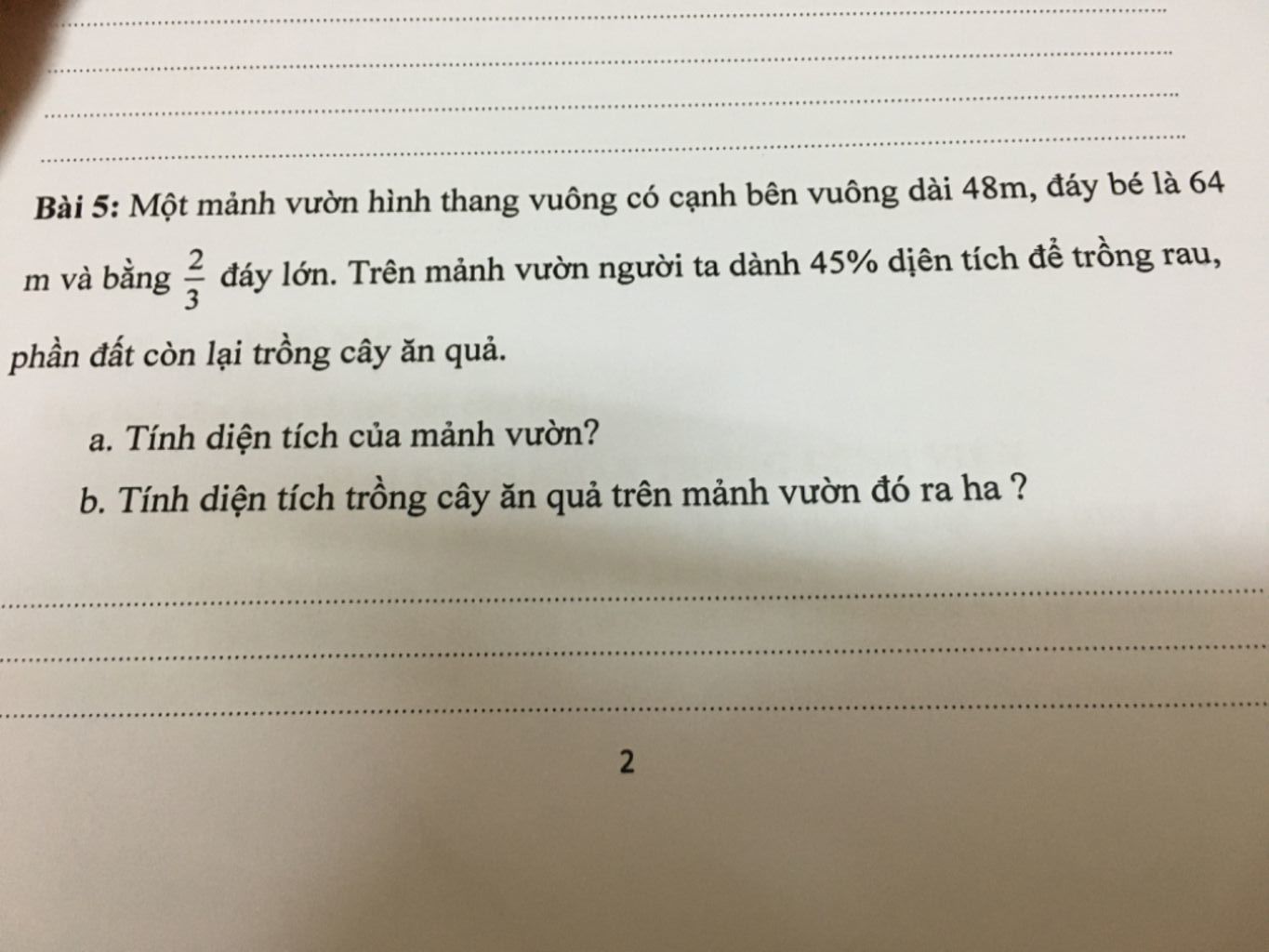 a) Đáy lớn mảnh vườn hình thang là: