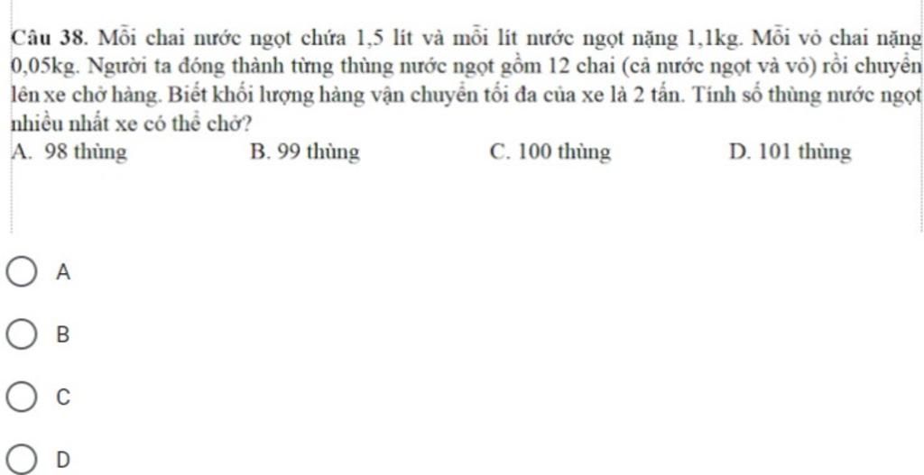 Số thùng nước ngọt nhiều nhất xe có thể chở là :