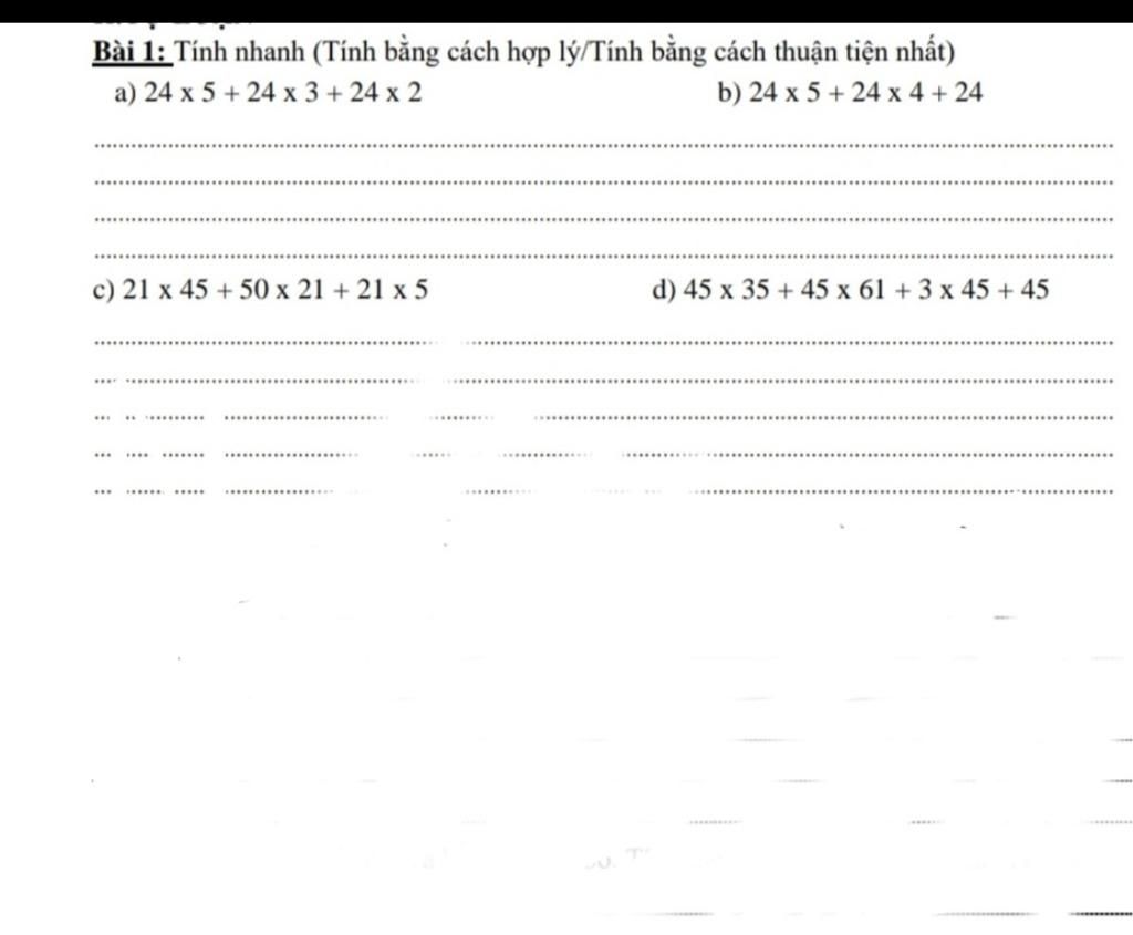 a) 24 x 5 + 24 x 3 + 24 x 2