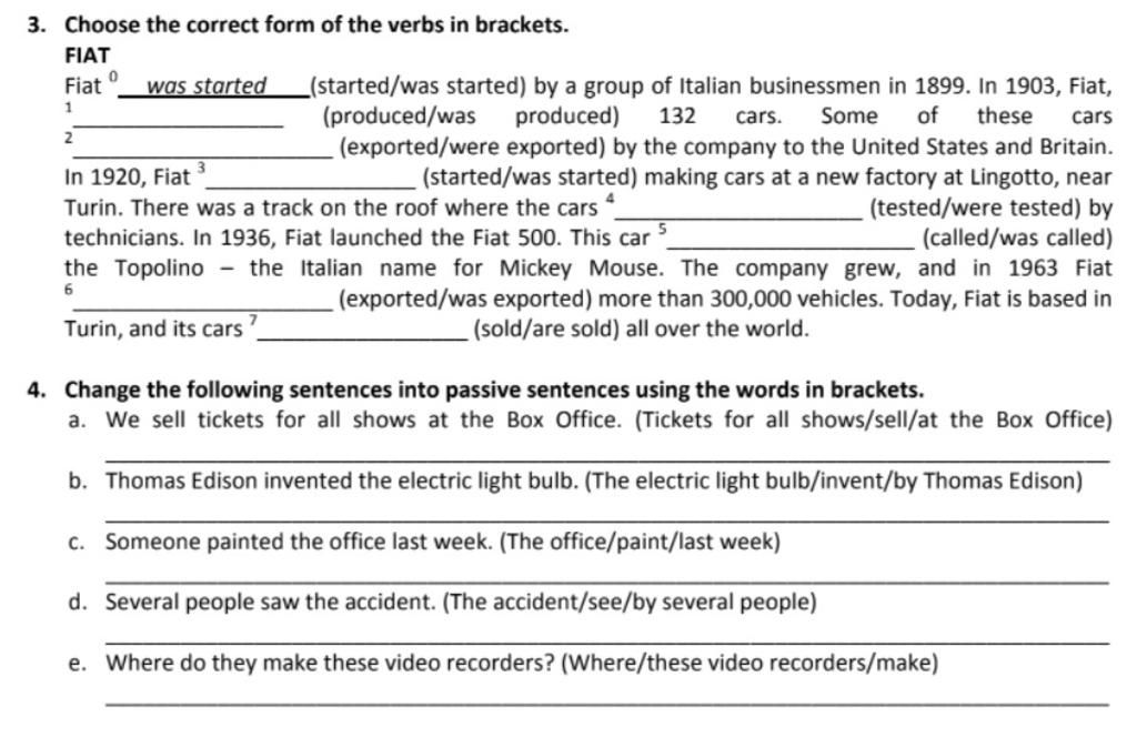 $-$ Câu $2- 7$ Bài $3$ và câu $b, c, d$ Bài $4:$ Câu bị động thì quá khứ đơn: