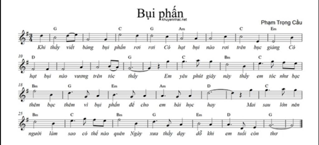 ( hạt bụi nào vương trên tóc thầy. Em yêu phút giây này thầy em, tóc như bạc )