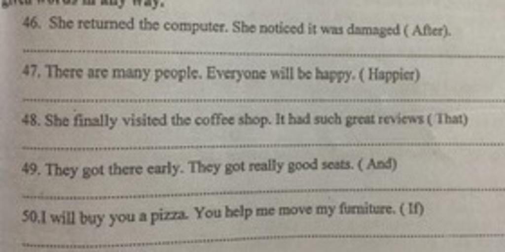 46. She returned the computer AFTER she noticed it was damaged. (dịch: Cô trả lại máy tính sau khi nhận thấy nó bị hỏng.)