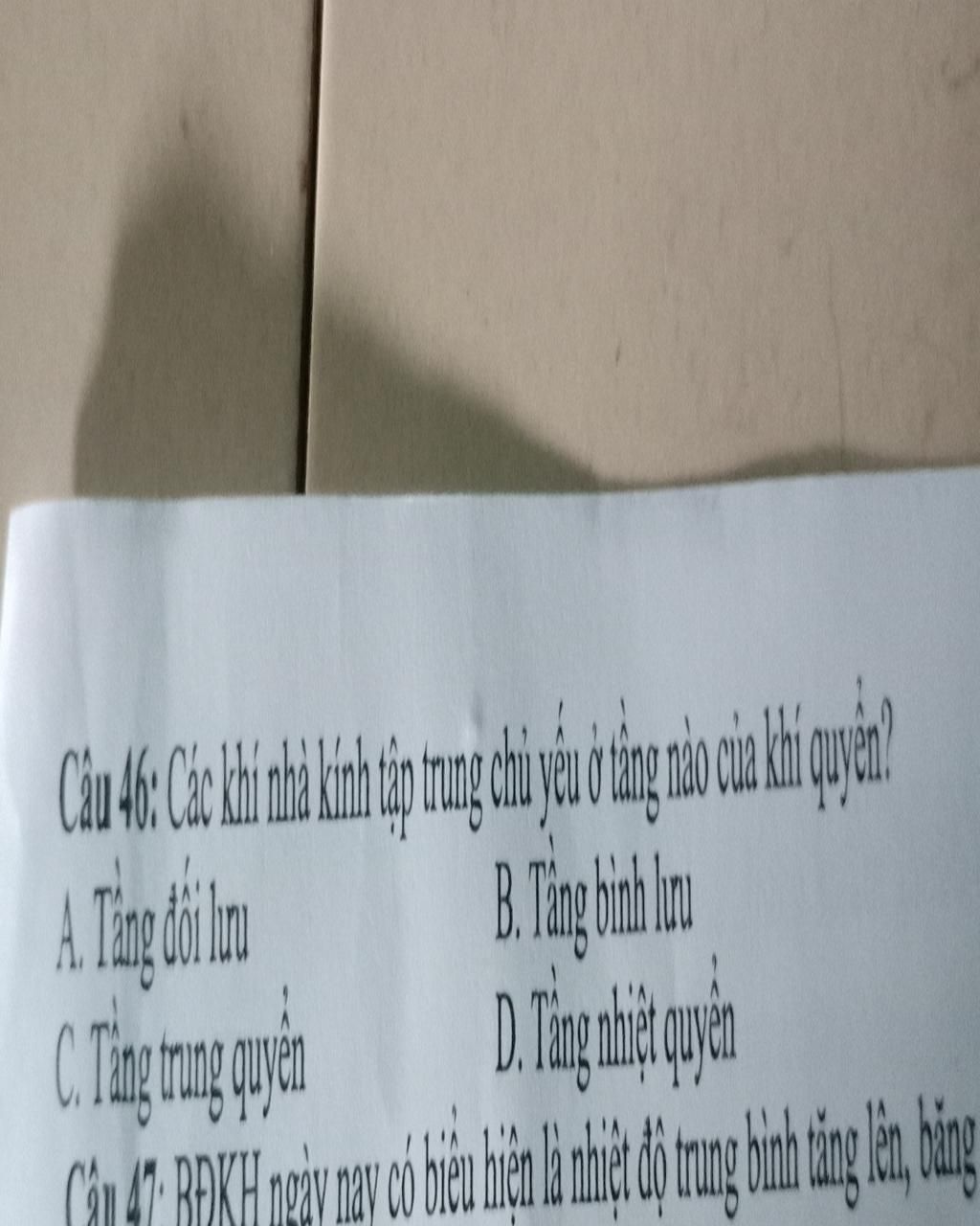 A.Tầng đối lưu