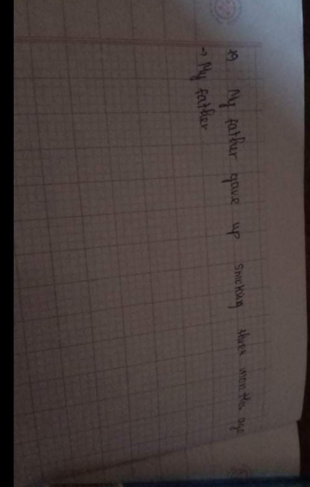 `-` Tạm dịch câu cho trước : Bố của tôi đã từ bỏ hút thuộc ba tháng trước