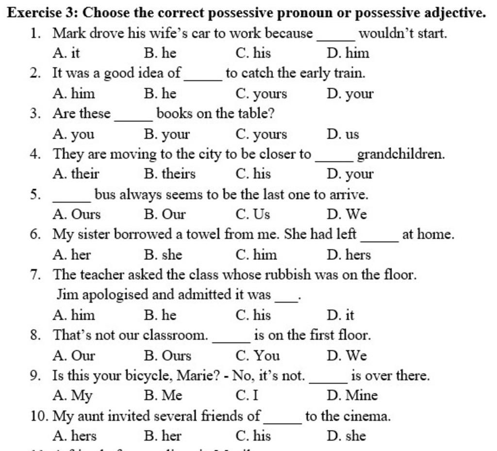 tương tự 3, vì đằng trước dùng they => dạng tính từ sở hữu của nó là their