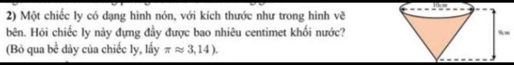 thể tích của hình là V=1/3 *2r*h=1/3*10*9=92.4