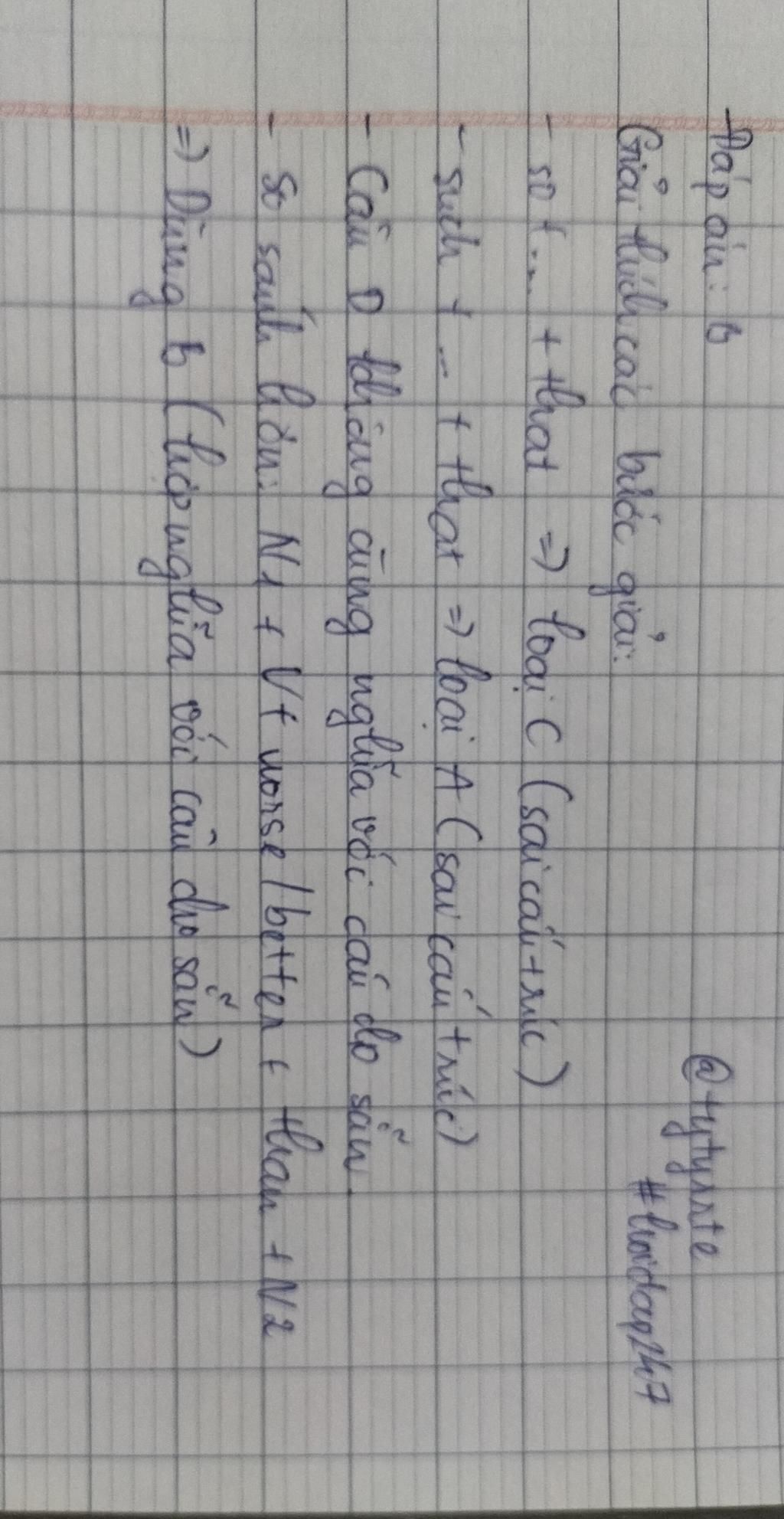 $D$ sai vì không khớp với đề bài vì dịch không sát nghĩa.