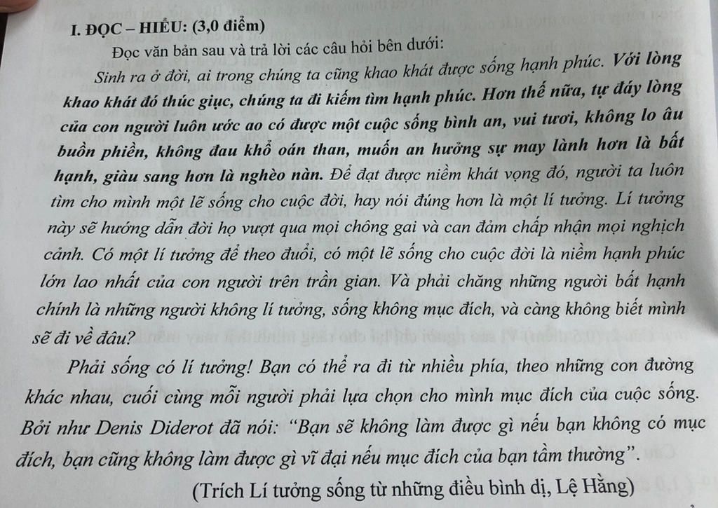 Câu 2: Dựa vào văn bản, hãy cho biết lí tưởng có vai trò gì trong cuộc sống của mỗi người?