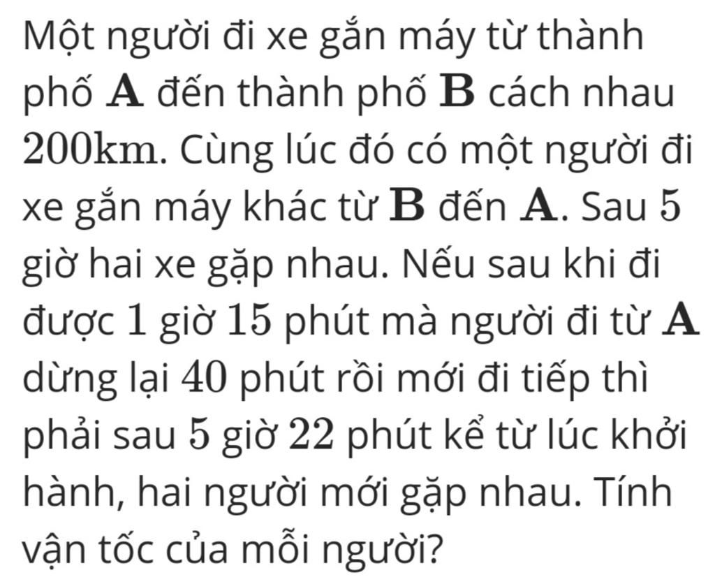 => vận tốc của xe đi từ B là : `40-a` (km/h)