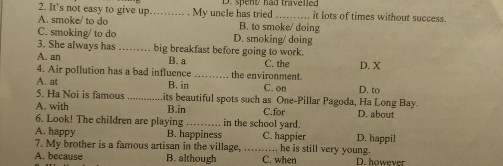 Ghép lại là: It’s not easy to smoking. My uncle has tried to do it lots of times without