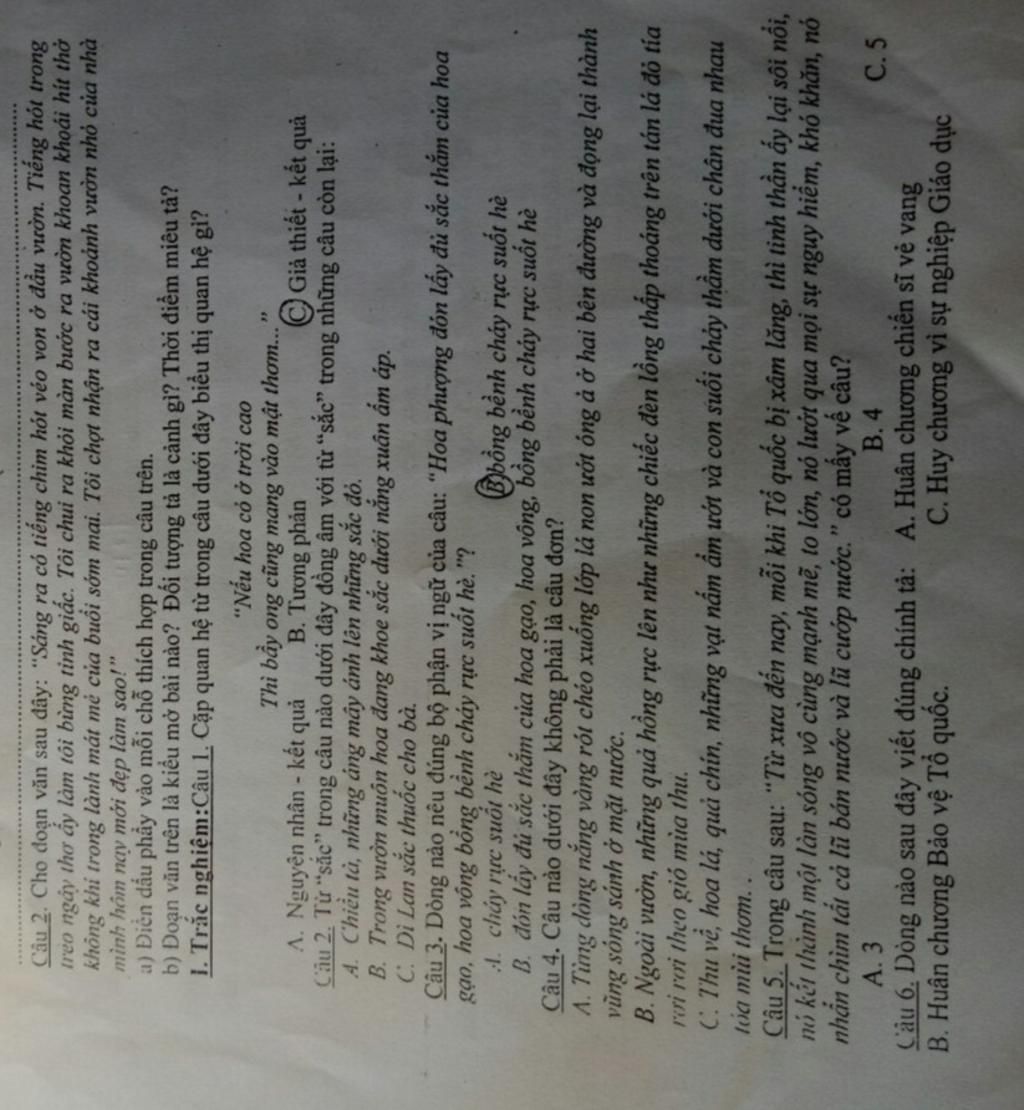 - Câu văn : " Trong vườn muốn hoa đang khoe sắc dưới nắng xuân ấm áp. " là câu có từ “sắc” trong câu nào dưới đây đồng âm với từ “sắc” trong những câu còn lại .