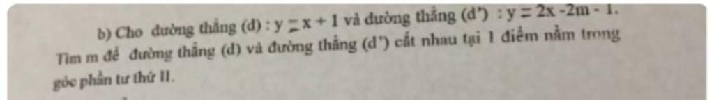 Để $2$ đường thẳng cắt nhau tại $1$ điểm nằm trong góc phần tư thứ $II$ thì $x<0$ và $y>0$.