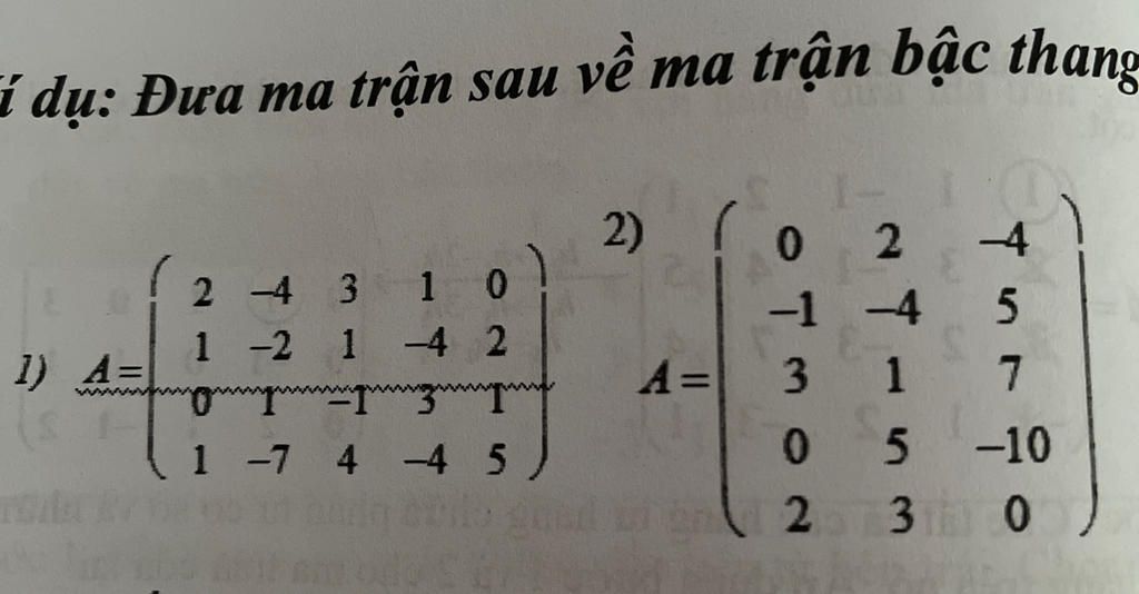 \kern26pt A = \left(\matrix{2&-4&3&1&0\\1&-2&1&-4&2\\0&1&-1&3&1\\1&-7&4&-4&5} \right)\\