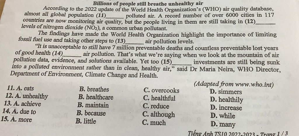 According to the 2022 update of the World Health Organization's (WHO) air quality database,