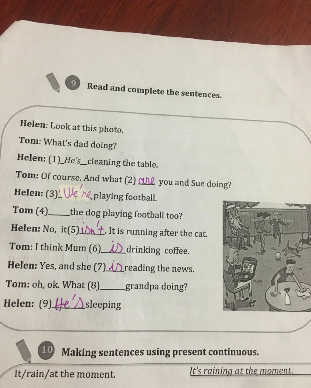 `=>` Do chủ ngữ " dog " , " grandpa " là số ít `=>` Dùng " is "