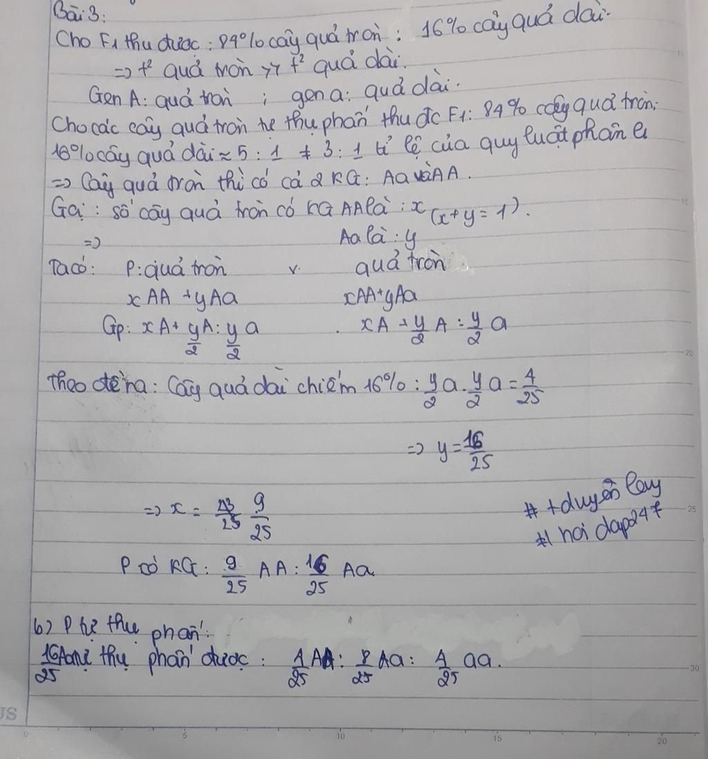 b) Cho cây quả đỏ tự thụ phấn thu được F2. Theo lí thuyết trong các cây quả tròn F2 thì cây thuần chủng chiếm tỉ lệ bao nhiêu?