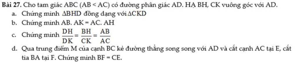 `=>`$\dfrac{BH}{CK}=\dfrac{AB}{AC}$ `(1)`