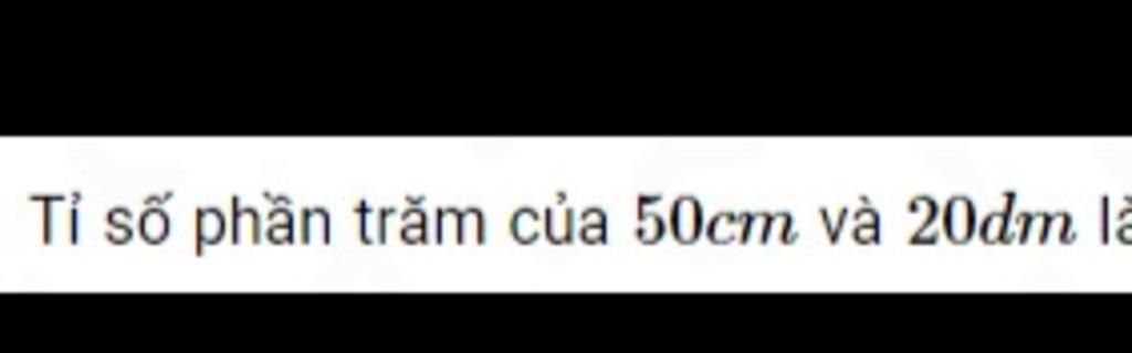 Tỉ số phần trâm giữa `50cm` và `20dm` là:
