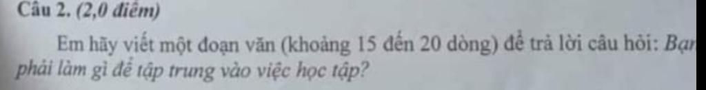 Sự tập trung là yếu tố cần thiết và bắt buộc với mỗi người. Chỉ khi tập trung, ta mới hoàn thành được công việc một cách hiệu quả nhất. Trong học tập, tập trung càng cần thiết để đạt được kết quả tốt nhất. Sự tập trung là thói quen đi theo một việc, một lộ trình đến khi nào bạn tìm được hướng đi và cách đi đến đích. Sự tập trung đồng nghĩa với việc nỗ lực hết mình trong công việc và không bị chi phối bởi bất kỳ hành động nào khác. Tập trung trong học tập mang lại rất nhiều lợi ích. Nó giúp con người có ý thức rèn luyện để hoàn thiện bản thân. Hơn nữa, nó còn rèn luyện cho con người sự kiên định, nhẫn nại trên con đường theo đuổi mục tiêu cuối cùng. Tập trung giúp con người thích nghi với hoàn cảnh, vượt qua mọi thử thách khốc liệt của việc học. Người tập trung sẽ năng động, có ý thức học tập và không ỷ lại vào người khác, từ đó kết quả học tập sẽ tốt hơn. Tập trung giúp ích chúng ta rất nhiều trong học tập cũng như trong công việc, giúp ta hiểu bài hay là hoàn thành việc tốt và sớm hơn dự kiến. Cuộc sống có rất nhiều điều thu hút sự tập trung của chúng ta bằng cách làm cho ta bị xao nhãng. Cách tốt nhất là ngăn ngừa trước khi điều đó xảy ra. Trước tiên, phải tìm ra những yếu tố gây mất tập trung và loại bỏ nó. Với việc học, yếu tố lớn nhất là mạng xã hội, game online... Hãy cố gắng hoàn thành việc học trước khi chạm đến những thứ ấy.