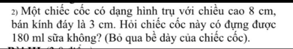 Vậy chiếc cốc có thể đựng được `180ml` sữa.