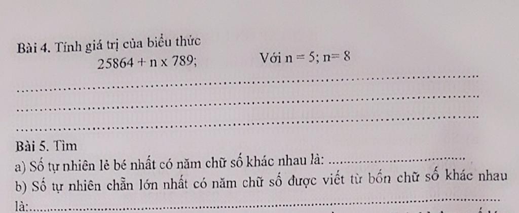 `a)` Số tự nhiên lẻ bé nhất có năm chữ số khác nhau là: `10235`