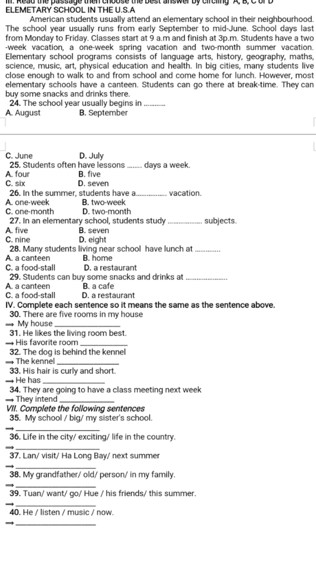 from Monday to Friday. Classes start at 9 a.m and finish at 3p.m. Students have a two