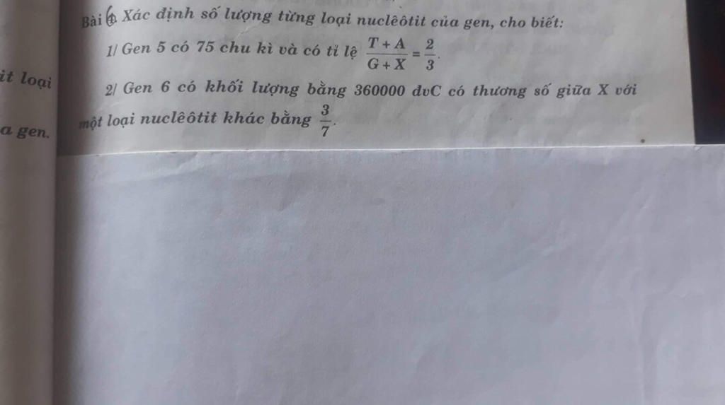 Có $\dfrac{T + A}{G + X}$ `= 2/3`