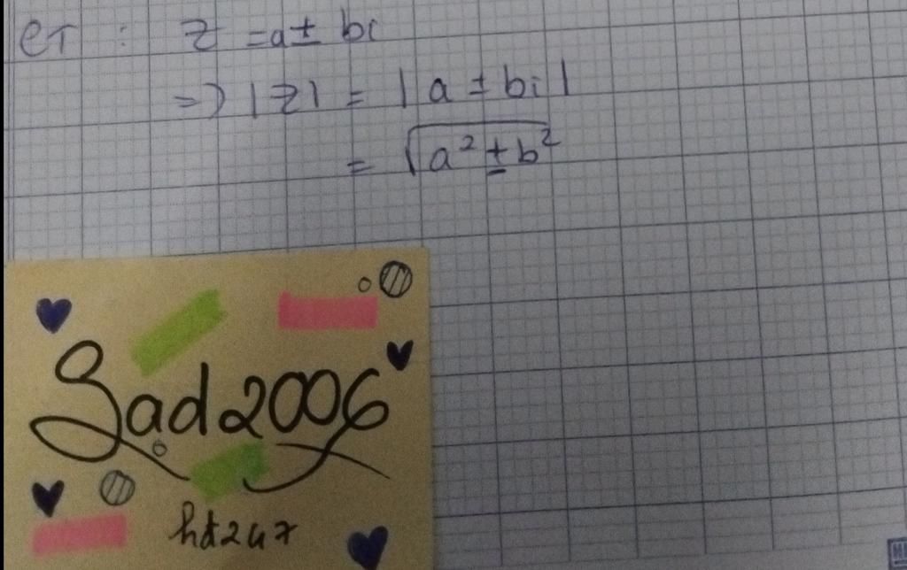Số phức $z=a+bi$ có modun $|z|=\sqrt{a^2+b^2}$