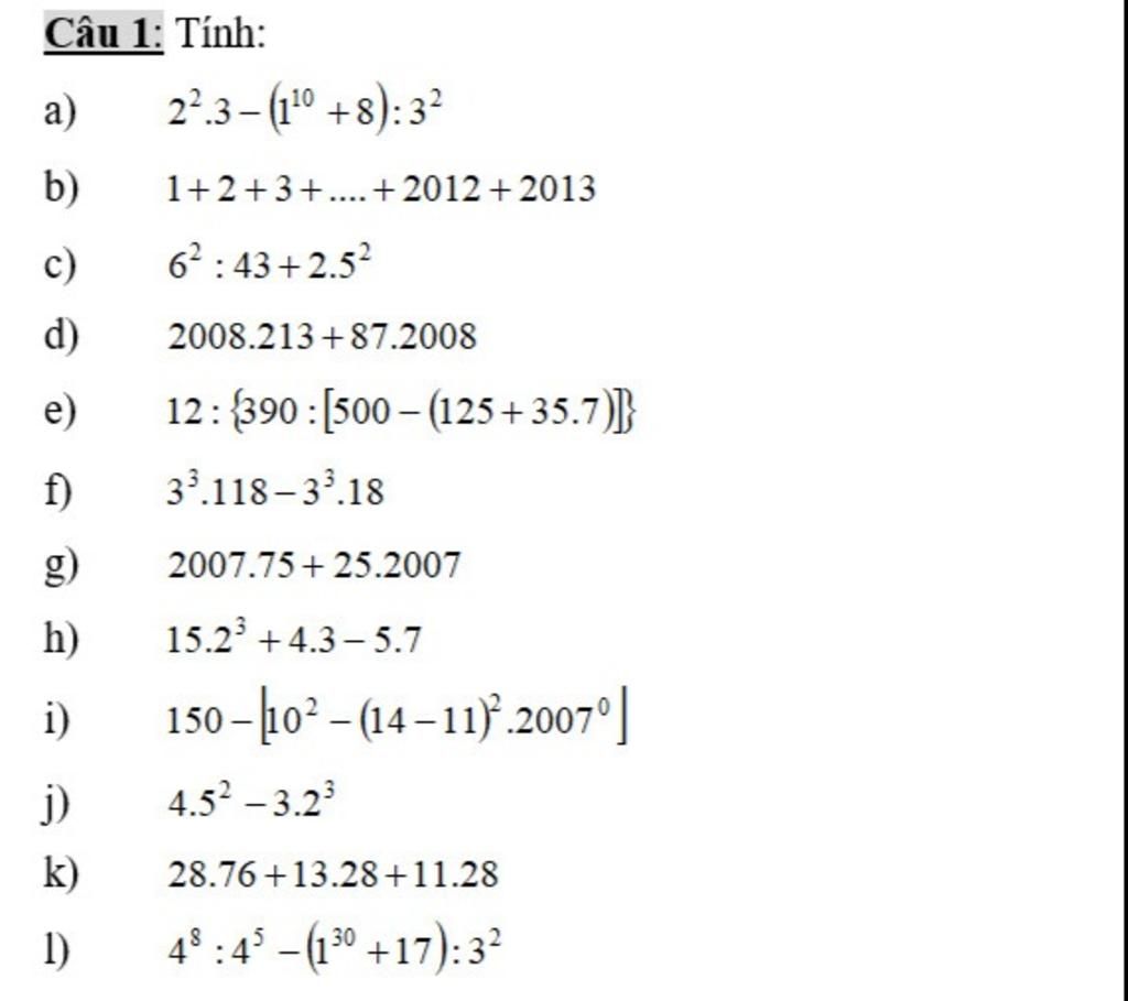 `2^2 . 3 - (1^10 + 8) : 3^2`