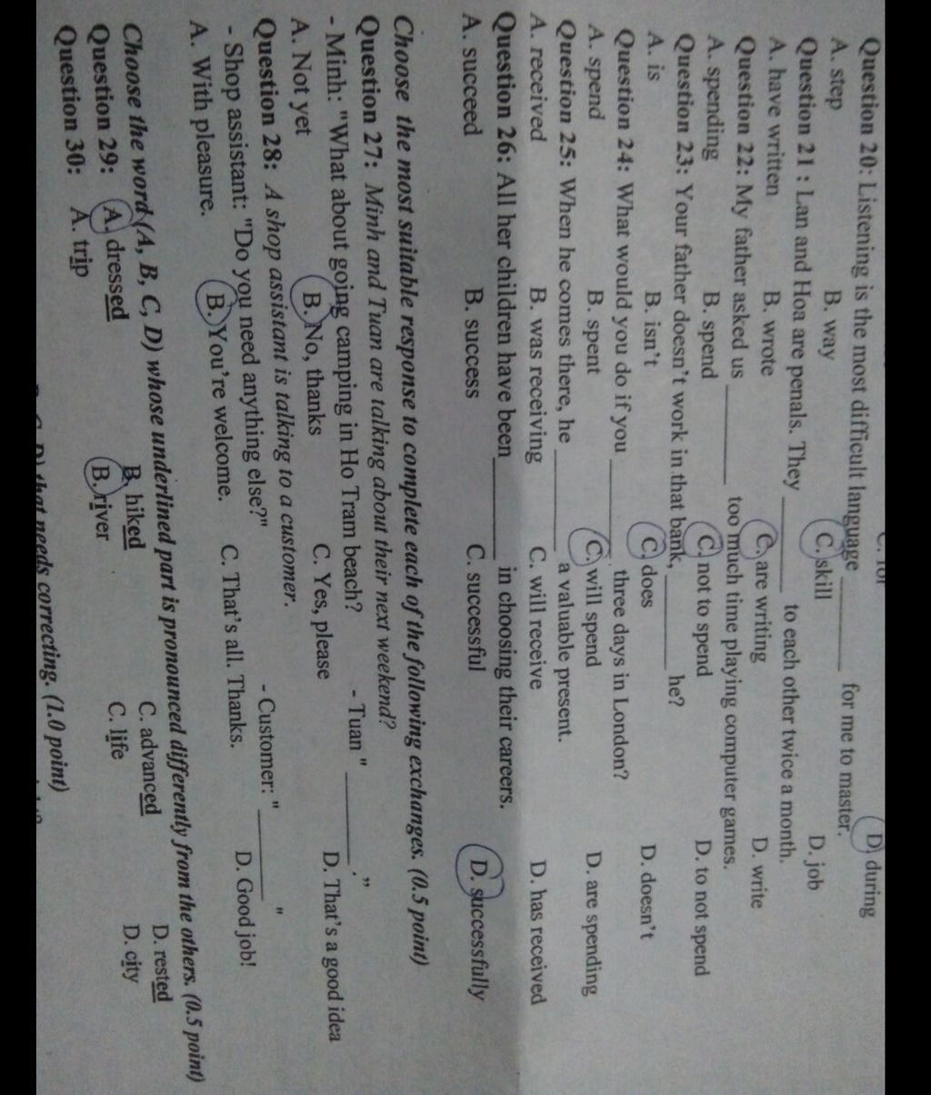 Question 21: Lan and Hoa are penals. They