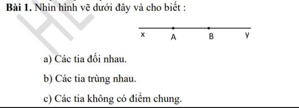 b) Các tia trùng nhau là: AB và Ay; BA và Bx.