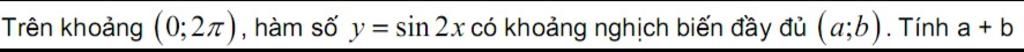 Ta có : `sin2x` nghịch biến khi `\pi/2+k2\pi<2x<{3\pi}/{2}+k2\pi`