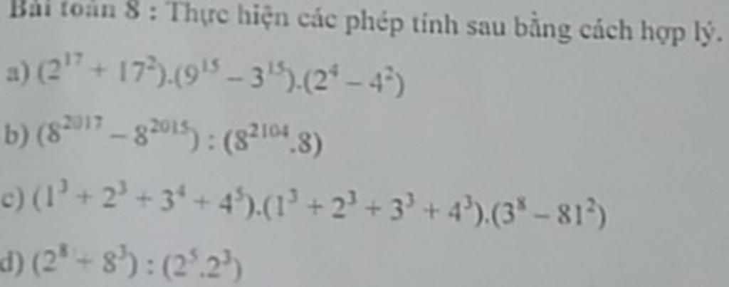 `b ) (8^2017 - 8^2015) : (8^2014 . 8)`