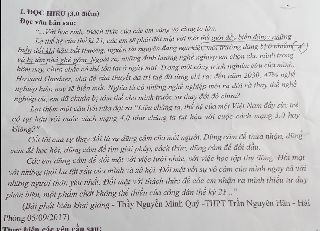Là thế hệ của thế kỉ 21, các em sẽ phải đối mặt với một thế giới đầy biến động: những
