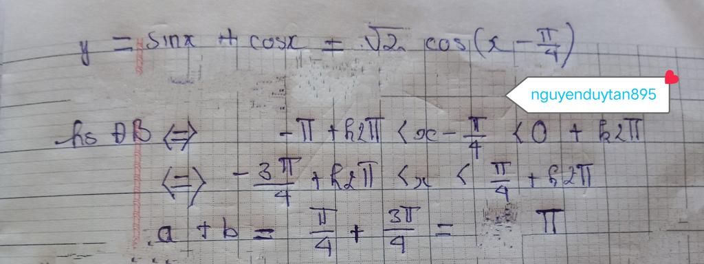 Nó đồng biến trên khoảng pi;2pi Nhưng mà đề cho khoảng từ -a Nên đổi thành -pi cho giống 2 khoảng nó giống nhau thôi