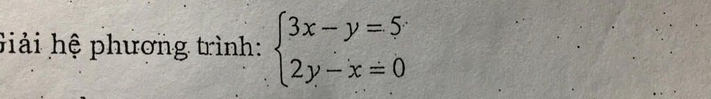 `<=>{(3x-y=5),(-x+2y=0):}`