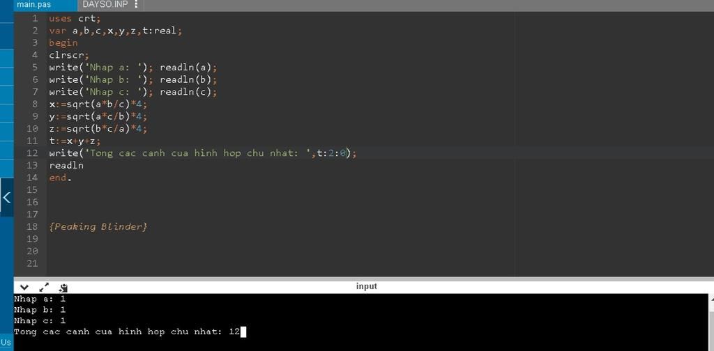 write('Tong cac canh cua hinh hop chu nhat: ',t:2:0);