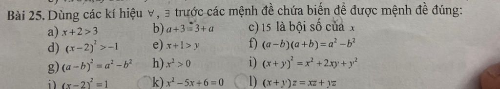 dùng các kí hiệu với mọi và tồn tại trước các mệnh đề chứa biến để được mệnh đề đúng